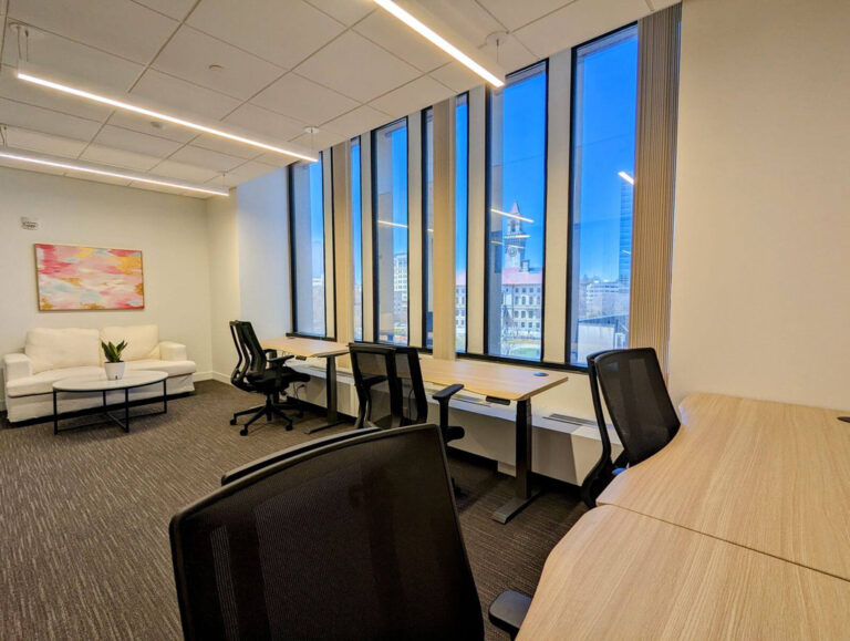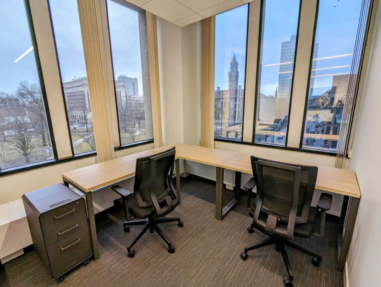 Venture X Worcester is located on the 4th floor of The Mercantile Center, offering 63 refined private offices and flexible workspace solutions. Spanning over 15,000 sqft, our modern coworking space is designed to accommodate teams of all sizes, from solo entrepreneurs to growing businesses and Fortune 500 companies. Whether you’re seeking a one-person office or a multi-desk solution, Venture X Worcester has the perfect space to support your success.