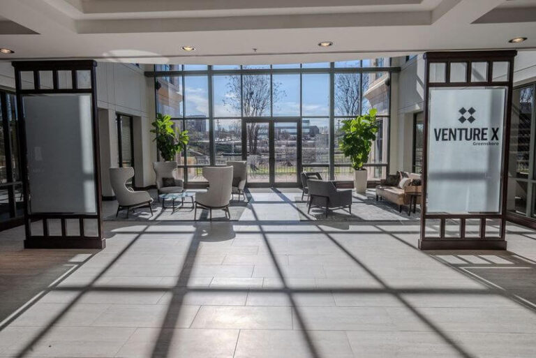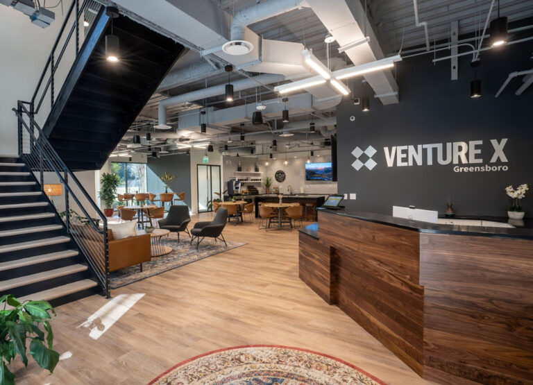 Our Venture X Greensboro coworking space, boasts 84 private offices, 3 conference rooms, event space, and ample complimentary parking. Our location appeals to a broad membership base that includes financial services, business professionals, designers, marketers, freelancers, small business owners, remote workers, and teams from large corporations.