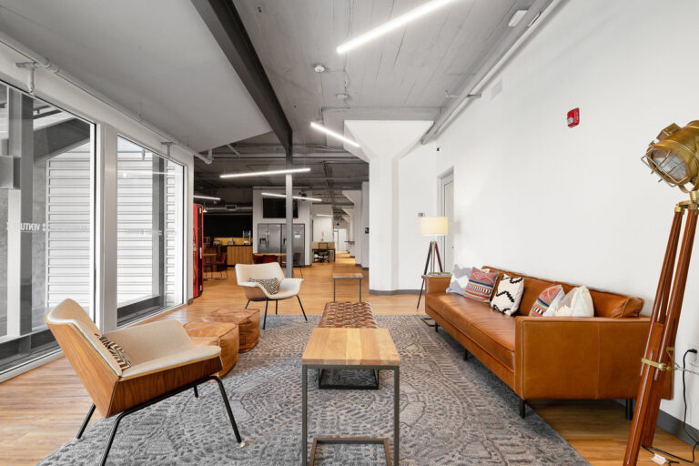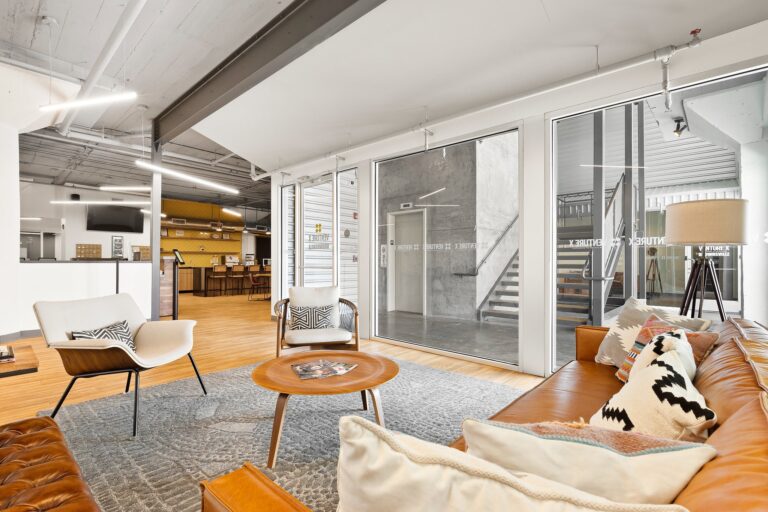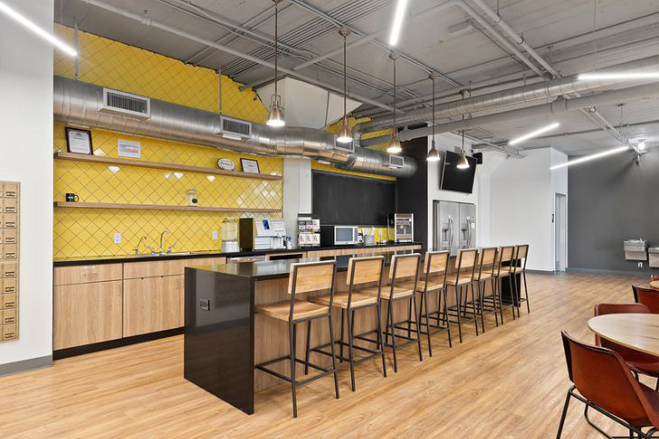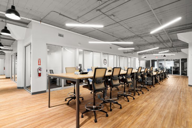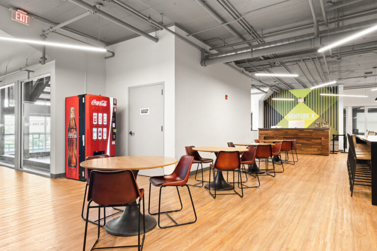 The modern designed interior of Venture X Brownsville has high exposed ceilings with an industrial loft design and floor-to-ceiling windows. There is a large lounge area that can be used to host events for up to 100 guests as well as a café. Plenty of free parking for members and guests is readily available. Coworking at Venture X Brownsville includes various amenities making it an ideal workspace for networking with like-minded people.